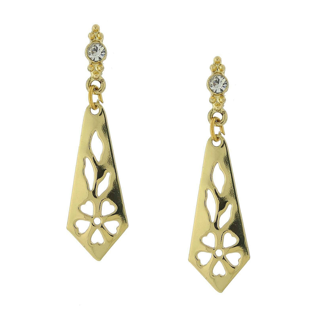 1928 Jewelry Cutout Dangle Earrings With Crystal Post Accents