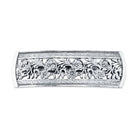 Tame your tresses with this slightly antiqued silver toned floral barrette. A unique floral pattern lies between the vintage-inspired pattern on the edges of the barrette that has a slight curve to it, making it a perfect fit on your head. Comfortable and chic!