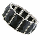 Faceted rectangular black epoxy stones sparkle and shine, giving this silver-tone stretch bracelet a glamorous glow.