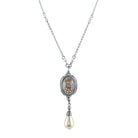 1928 Jewelry Antiqued Pewter Faux Pearl Drop Spinner Pendant Necklace 30"