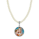 Symbols Of Faith 5mm Faux Pearl Strand Round Madonna and Child Pendant Necklace 15" + 3" Extender
