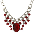 1928 Jewelry Red Faceted Oval Stone And Crystal Bead Bib Necklace 18"
