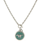 1928 Jewelry Turquoise Color Enamel Horse Pendant Toggle Necklace 18"