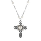 Symbols of Faith Antiqued Cross & Faux Pearl Cable Chain Necklace 24"