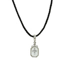 Symbols Of Faith Frosted Glass Crystal Cross Pendant Black Twist Rayon Cord Necklace 15" + 3" Extender