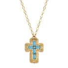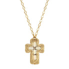 Symbols Of Faith Glass Stone Faux Pearl Cross Reliquary Pendant Necklace 32"