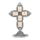 This cross stand is a wonderful testament to your religious faith and makes a great addition to any living room, bedroom and dining area. Featuring a stand with intricate floral details, four clear brilliant crystals and six octagon stones.