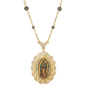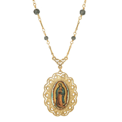 Symbols Of Faith Our Lady Of Guadalupe Radiant Pendant Blue Bead Necklace 20"