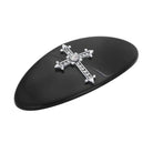 Symbols of Faith Oval Jet Black Pewter Crystal Cross Hair Barrette