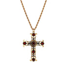 - Gold Tone Cross With Clear And Siam Red Crystals
