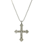 This stunning cross pendant necklace showcases a beautifully detailed crucifix at its heart, surrounded by intricately designed saints at each corner. Crafted from pewter, the pendant exudes elegance and spiritual significance. Suspended from a durable stainless steel ball chain with a secure ball chain clasp closure, it offers both style and durability for everyday wear.