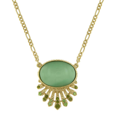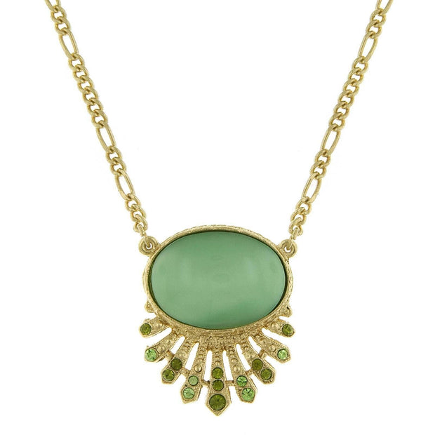 Vintage vogue gets an unexpected pop of color in this pastel pendant necklace from our Signature 1928 Collection. A delicate diamond- cut Figaro chain suspends a sugar-coated shade of mint green moonstone that spouts forth gold spikes encrusted with a sparkling selection of olivine and green peridot crystals. Available available in Pink Moonstone.